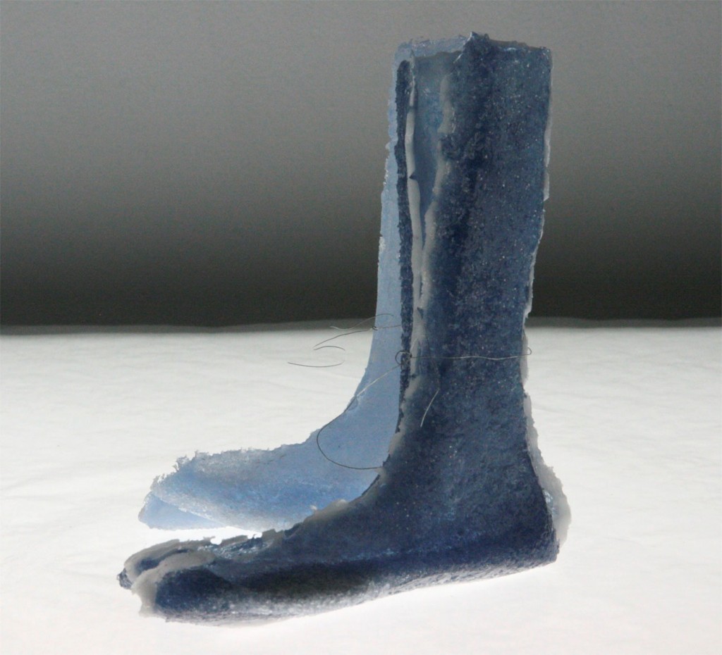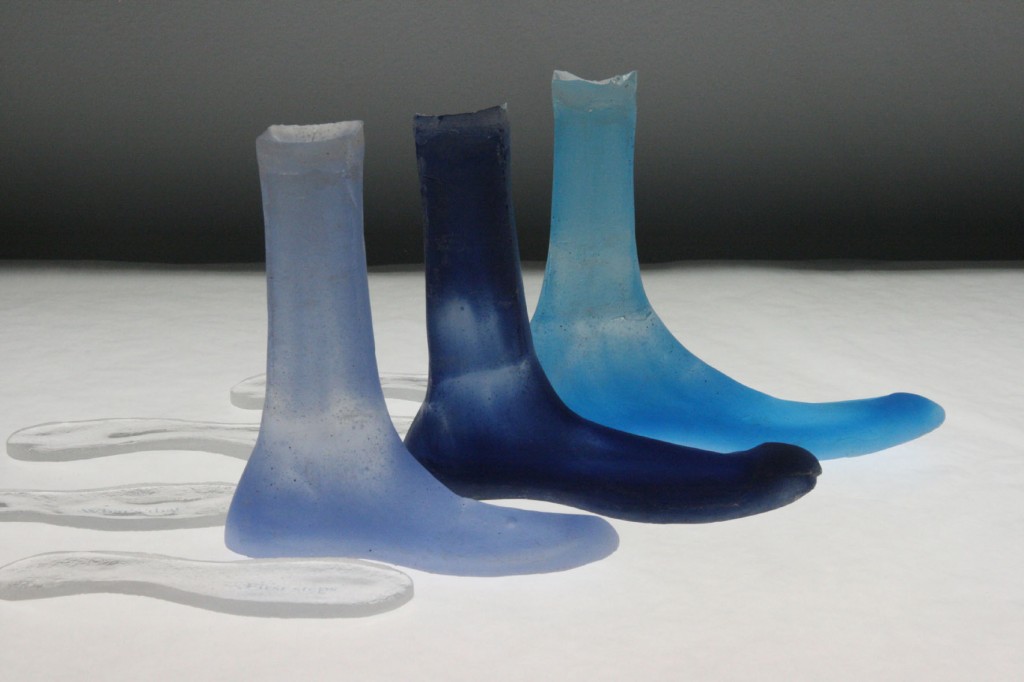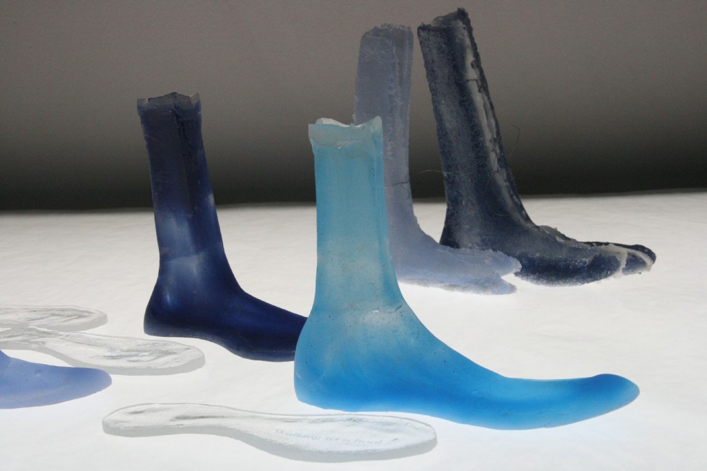 This work is an attempt to capture the day to day lived experience of growing up and relating to the world. With a starting point in a daily used item such as the shoe, changing sizes of nondescript shoe lasts have been cast in glass. Alongside them run personal narratives and anecdotes related to childhood. Ultimately this piece is an attempt to capture the impossible – the transparency of a lived experience.