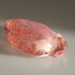 A glass heart sits alongside a cast of a male human torso. Although not anatomically correct the heart is inspired by medical images of the human heart. When cast in glass, and with light shining through it, the heart looks as if it is still beating.